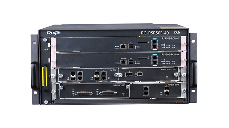 RG-RSR50E系列万兆路由器以其高可用性、高性能、多业务、高安全、热拔插和热备份等优势,支撑企业业务运营和承载网络的建设,有效提高网络价值并节约网络建设成本。